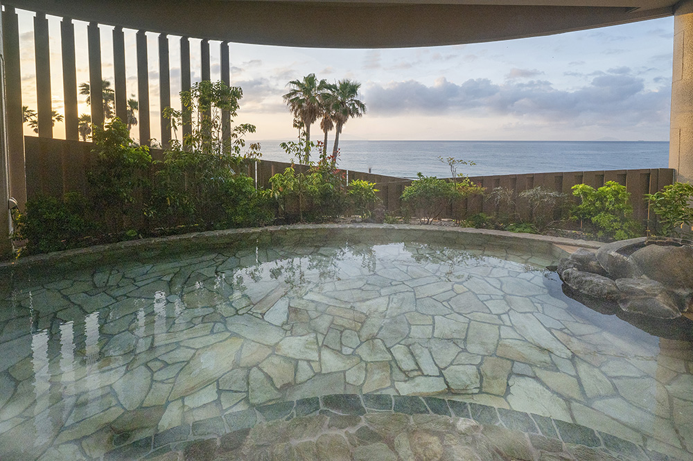 太平洋の大海原を望む露天風呂。朝は清々しい朝日を望む入浴が楽しめます。