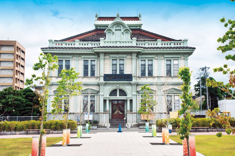 明治37(1904)年に第五十九銀行本店として建設。設計者・堀江佐吉の最高傑作としても名高く、美しい建物の意匠は必見。国の重要文化財。