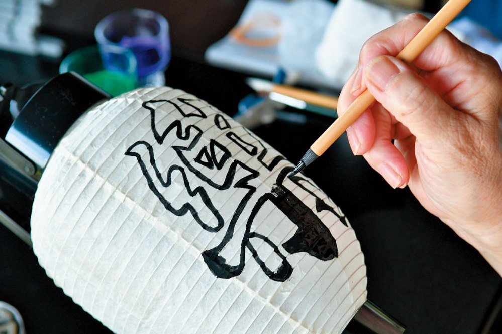 独自の手法と強く厚い紙を使った、型くずれしにくい水府提灯の製造元。型を組むところから絵付けをして完成するまでの、オリジナル提灯づくりができます(要予約)。