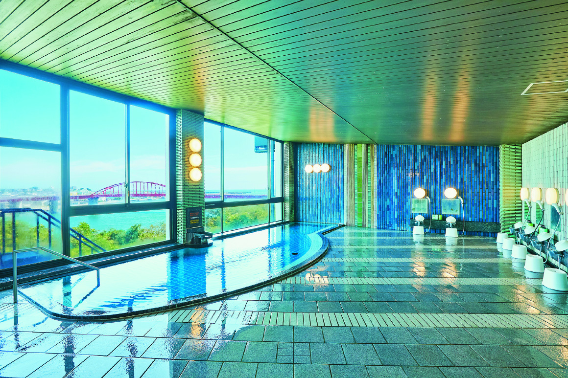 2025年7月に一部客室やレストランをリニューアル、那珂川を望む高台からの眺望が自慢のホテルです。天然温泉を湛えた大浴場や露天風呂、貸切風呂からも開放的な景色を一望。絶景を前にする湯浴みは格別のひとときです。地元茨城が誇るブランド食材を活かした夕食をはじめ、大洗の郷土料理を味わえるビュッフェ朝食も好評です。